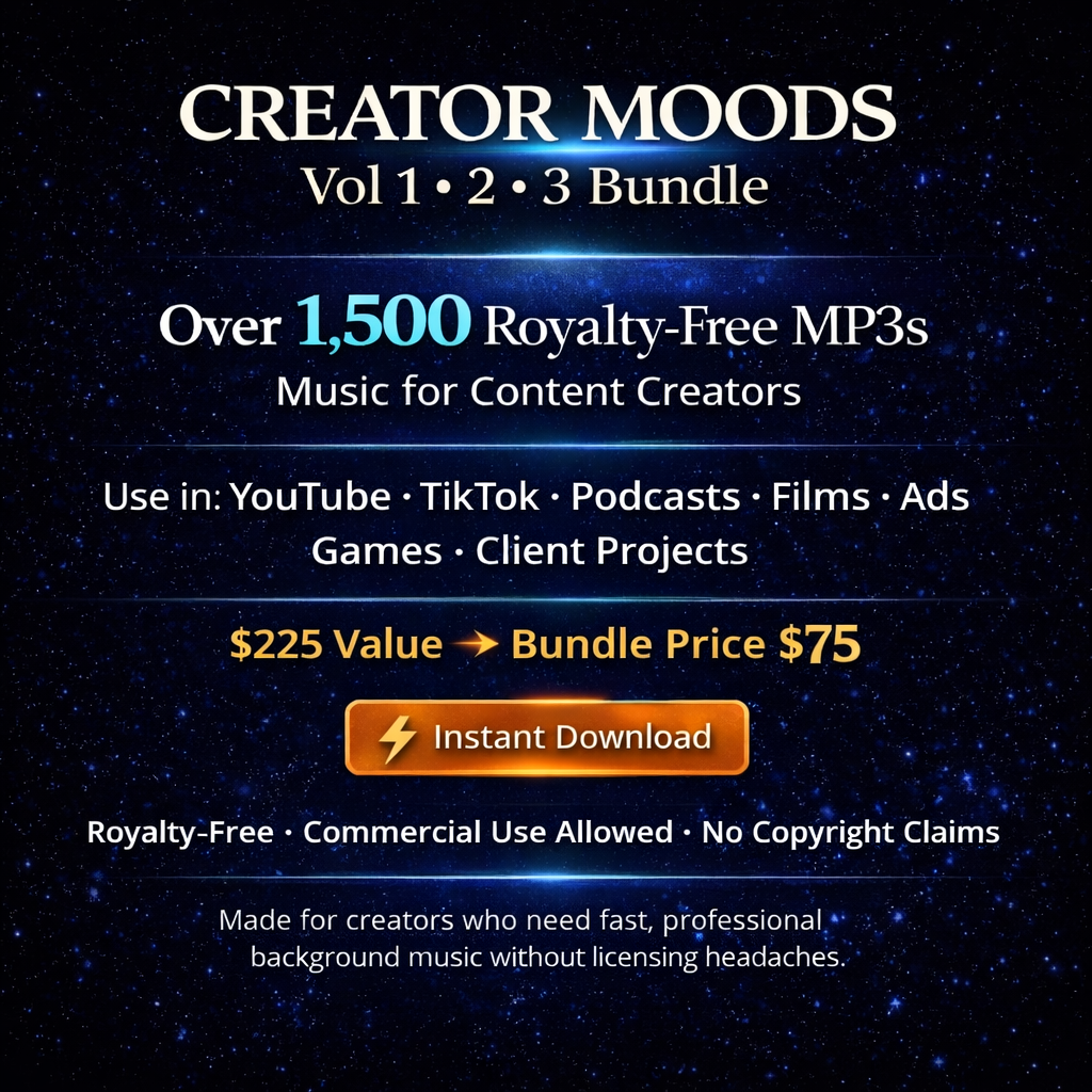 Creator Moods is a premium royalty-free music collection built specifically for content creators.
